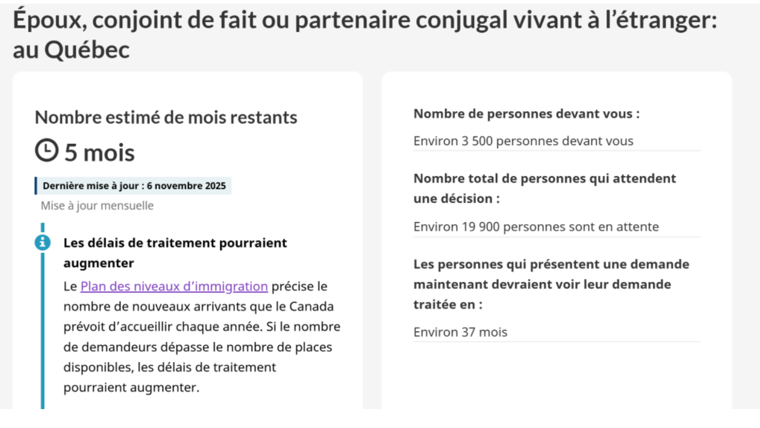 Je crois que j'ai mal compris. Moi, le parrain, je suis à Montréal. Mais mon épouse vit au Maroc. Donc le délai estimé était faux. Je corrige. (erreur de newbie. ça prouve effectivement que je suis nouveau dans le domaine LOL.) Les stats sont maintenant plus alarmantes