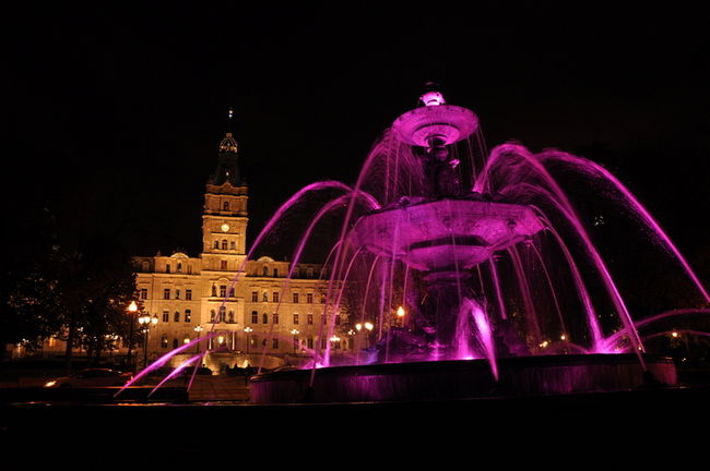 Québec, le 3 octobre 2013 Jusquau 14 octobre, Québec se pare de rose alors que la couleur de la lutte au cancer du sein illuminera des dizaines dentreprises, de sites et de monuments!