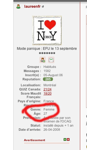 Habitués jimmy Posté(e) 7 septembre 2011 Habitués Posté(e) 7 septembre 2011 (modifié) Décidemment on est fait pour...pas s'entendre ! Je vivrais anytime a Paris...dans les beaux quartiers évidemment...et avec laureenfr ! Jimmy, regarde bien cela, ce n'est pas pour rien que c'est affiché, certes en tout petit mais en plissant les sourcils Et ? Mais je l'ai déjà dit, elle est trop vieille pour moi jimmy Modifié 7 septembre 2011 par jimmy Citer