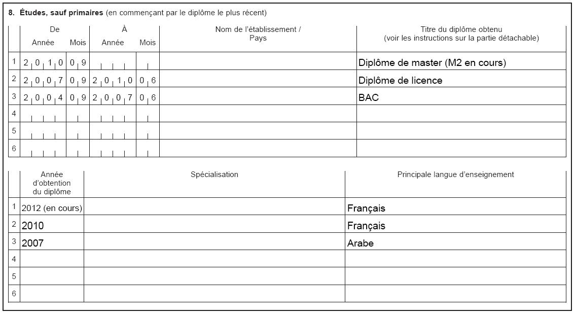 m.yebda Posté(e) 19 novembre 2011 Posté(e) 19 novembre 2011 salut ... pour le formulaire de la DCSQ , est ce que on met les études en cours ? ou bien que les diplômes obtenus ??? est-ce que c'est juste ce que j'ai fais sur la photo ? Citer