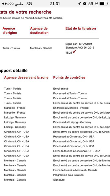 Habitués H.Bahrini Posté(e) 9 septembre 2015 Habitués Posté(e) 9 septembre 2015 Bonjour, je compte envoyer les documents, demandés dans la lettre d'intention de rejet, par 'rapidePost'. Avez vous une idée sur le temps que prenne RapidePost pour faire parvenir un courrier de Tunisie vers Québec? Cordialemet, Riadh dans mon cas: envoi le 26 Juin, réception le 02 Juillet Citer