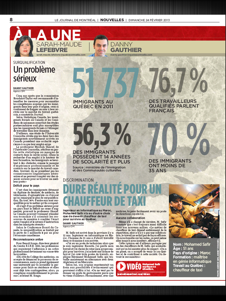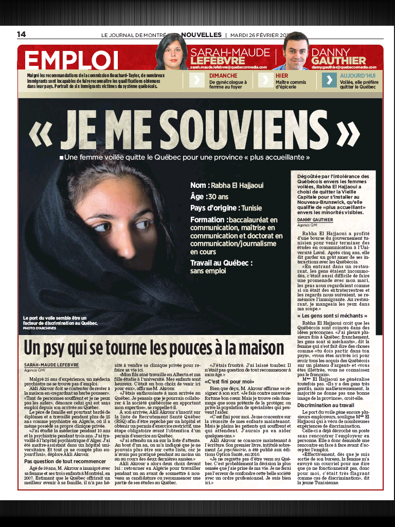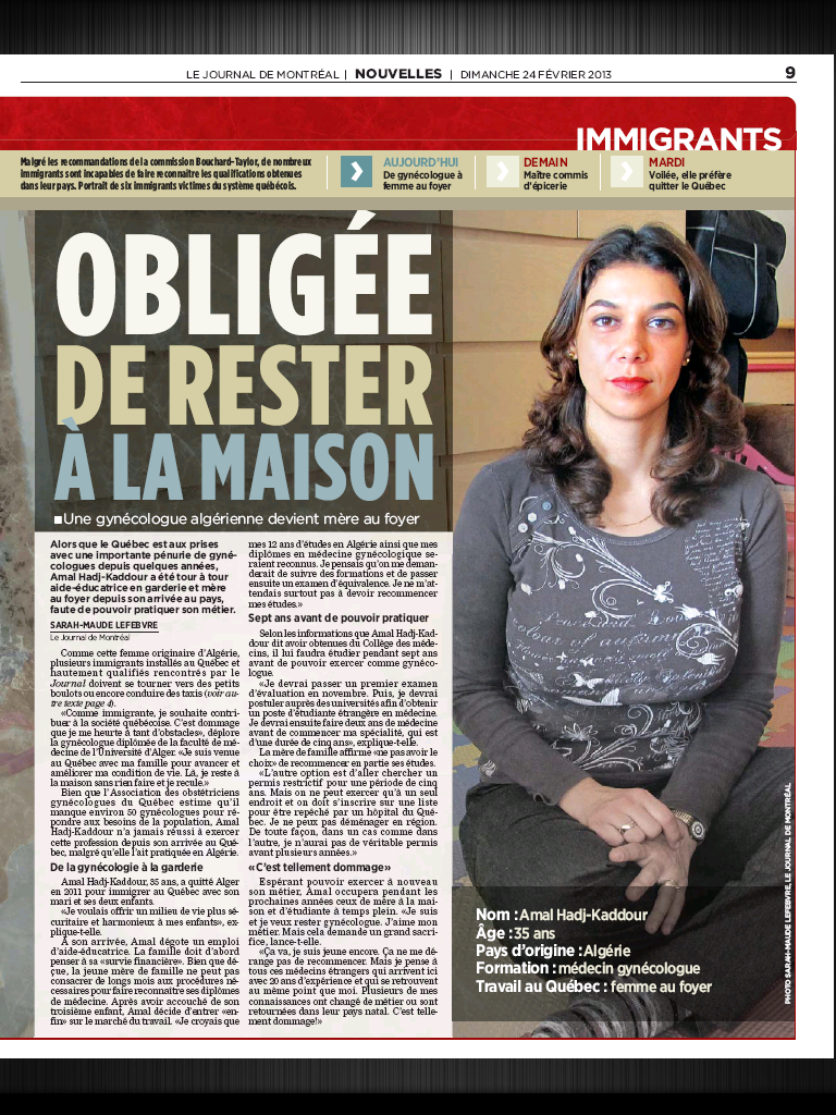 Habitués jimcricket Posté(e) 27 février 2013 Habitués Posté(e) 27 février 2013 L'herbe est plus verte ailleurs, Mais malheureusement pas pour tout le monde . Voici quelques sujets publie par le JOURNAL DE MONTREAL cette semaine, concernant les problemes d'immigration et d'integration pour le peuple arabe, bonne lecture a tous. Plein de courage pour ces personnes quimtent de reussir. Citer