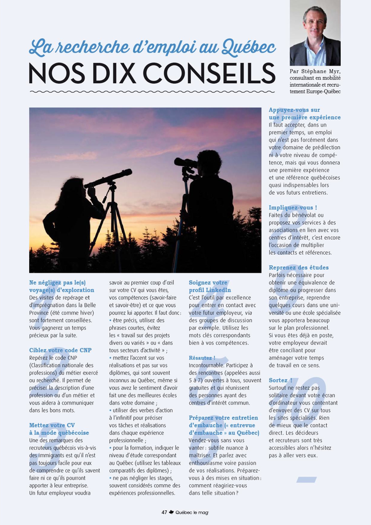 smyr Posté(e) 16 septembre 2013 Posté(e) 16 septembre 2013 (modifié) Bonjour, Franco-canadien basé à Montréal depuis 10 ans j'ai fais du recrutement et du management des deux cotés de l'océan.Ci-joint quelques conseils que je donne souvent aux candidats à l'expatriation au Québec pour trouver un(e) job. Ce n'est certes pas exhaustif et leur mise en application n'est pas toujours aussi facile qu'il n'y parait mais c'est ce qui fait le piment de l'expatriation, non ? Oui les possibilités au Québec sont grandes mais il faut se préparer aux différences d'approches entre nos deux sociétés et cultures.Bonne chance aux nouveaux arrivants et à tous ceux qui s'en viennent ! Stéphane Modifié 16 septembre 2013 par Satinka Pas de lien vers un site commercial SVP veniziano, chafikben, Rbreg et 2 autres ont réagi à ceci 5 Citer
