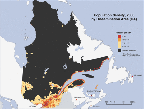 immigrer.com Posté(e) 31 octobre 2013 Posté(e) 31 octobre 2013 Où vit la majorité de la population au Québec ?Cette image de la densité urbaine du Québec est assez impressionnante. Comme vous voyez, y'a de la place ! Citer