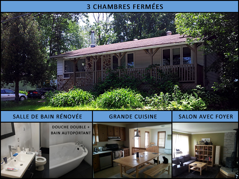 wanoo Posté(e) 23 décembre 2013 Posté(e) 23 décembre 2013 Maison 3 chambres fermées avec un grand salon cuisine à LAVAL Disponible immédiatement à la location: Maison calme située dans une rue sans issue (Idéal pour un jeune couple avec enfants) A 30 minutes du centre ville de Montréal: proche de l'autoroute 13 / 440 / 640 (voiture) A 10 minutes du Train de banlieue (Ste rose, ligne 2 montagnes) et 15 minutes de la station de Métro Montmorency Dépanneur à 1 minute - IGA / Super C à 5 minutes - École à 3 minutes Description: 3 chambres fermées (1 grande chambre de maître et 2 chambres pour jeunes enfants) Salle de bain entièrement rénovée en 2013 avec douche 2 places et bain autoportant Espace ouvert: Salon + grande cuisine Salon avec foyer à bois Rénovation du chauffage pour un système à convection avec thermostat programmable dans chaque pièce Plancher de bois franc / céramique neuf à grandeur Aspirateur central Possibilité de louer Frigo / Cuisinière / Lave-Vaisselle / Laveuse / Sécheuse (me contacter) 2 à 3 Espaces de parking exterieur (Tempo disponible pour l'hiver) Sous-sol non aménagé (espace de rangement, atelier, etc...) Entrée Laveuse / sécheuse au sous-sol Balcon en avant et Deck en arrière Jardin clôturé + Cabanon Restrictions: Pas de fumeurs - Références vérifiables (contact de l'ancien propriétaire -preuve d'emploi) Pas de gros chiens, uniquement des chats et/ou de petits animaux Veuillez contactez Mr Davisseau au 514 575 5710 Citer