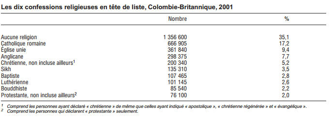 Habitués OuestCanadien Posté(e) 3 avril 2014 Habitués Posté(e) 3 avril 2014 Selon Satistiques Canada, la Colombie-Britannique serait la province la moins religieuse avec un tiers des résidents se déclarant sans religion: http://www12.statcan.gc.ca/francais/census01/Products/Analytic/companion/rel/bc_f.cfm Colombie-Britannique : un tiers se dit sans religion La Colombie-Britannique constituait la seule province, à part le Yukon, où la réponse « Aucune religion » était la plus fréquente en 2001. Près de 1,4 million de résidents de la Colombie-Britannique ont déclaré n’avoir aucune religion, en hausse de 39 % depuis 1991. Ils représentaient 35 % de la population en 2001, comparativement à 30 % en 1991. Suivie de l'Alberta ou un quart de la population se déclare sans religion: http://www12.statcan.gc.ca/francais/census01/Products/Analytic/companion/rel/ab_f.cfm Alberta : près du quart de la population n’a aucune religion Au même moment, le nombre de résidents de l’Alberta ayant déclaré n’avoir aucune religion a augmenté de 39 % pour se situer à près de 678 900. Ils formaient 23 % de la population en 2001, comparativement à 19 % en 1991 Alors que le Québec est l'une des provinces les plus religieuses du Canada selon statistiques Canada ou seulement 6% se déclarent sans religion. http://www12.statcan.gc.ca/francais/census01/Products/Analytic/companion/rel/qc_f.cfm Québec : plus importante proportion de catholiques romains En même temps, le nombre de résidents du Québec ayant déclaré n’avoir aucune religion s’est accru de 56 % pour se situer à plus de 400 300. Ils représentaient 6 % de la population en 2001, comparativement à seulement 4 % en 1991. Ce n'est pas surprenant d'autant plus que c'est la seule province qui admet officiellement une religion officielle ( crucifix à l'assemblée ). Citer