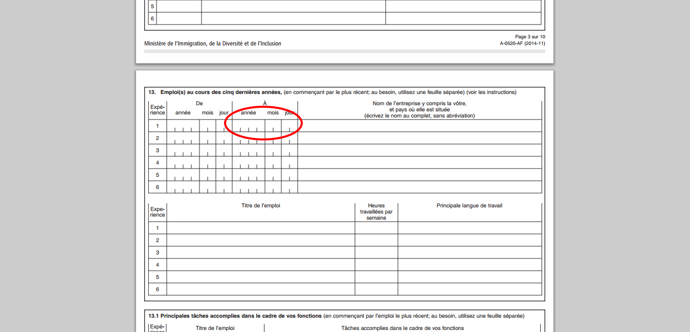quand tu va signé et daté ton formulaire, la tu va mettre la même date dans la partie expérience professionnelle, les deux dates doivent être pareils