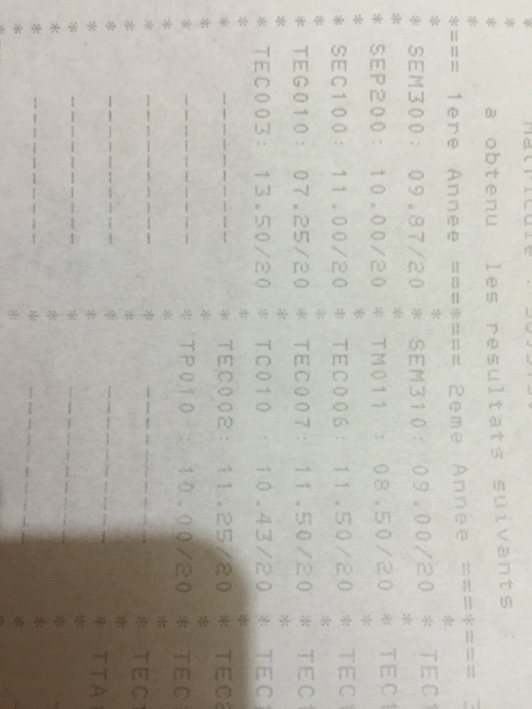 Peux-tu montrer une photos des tes relevés de notes? ??