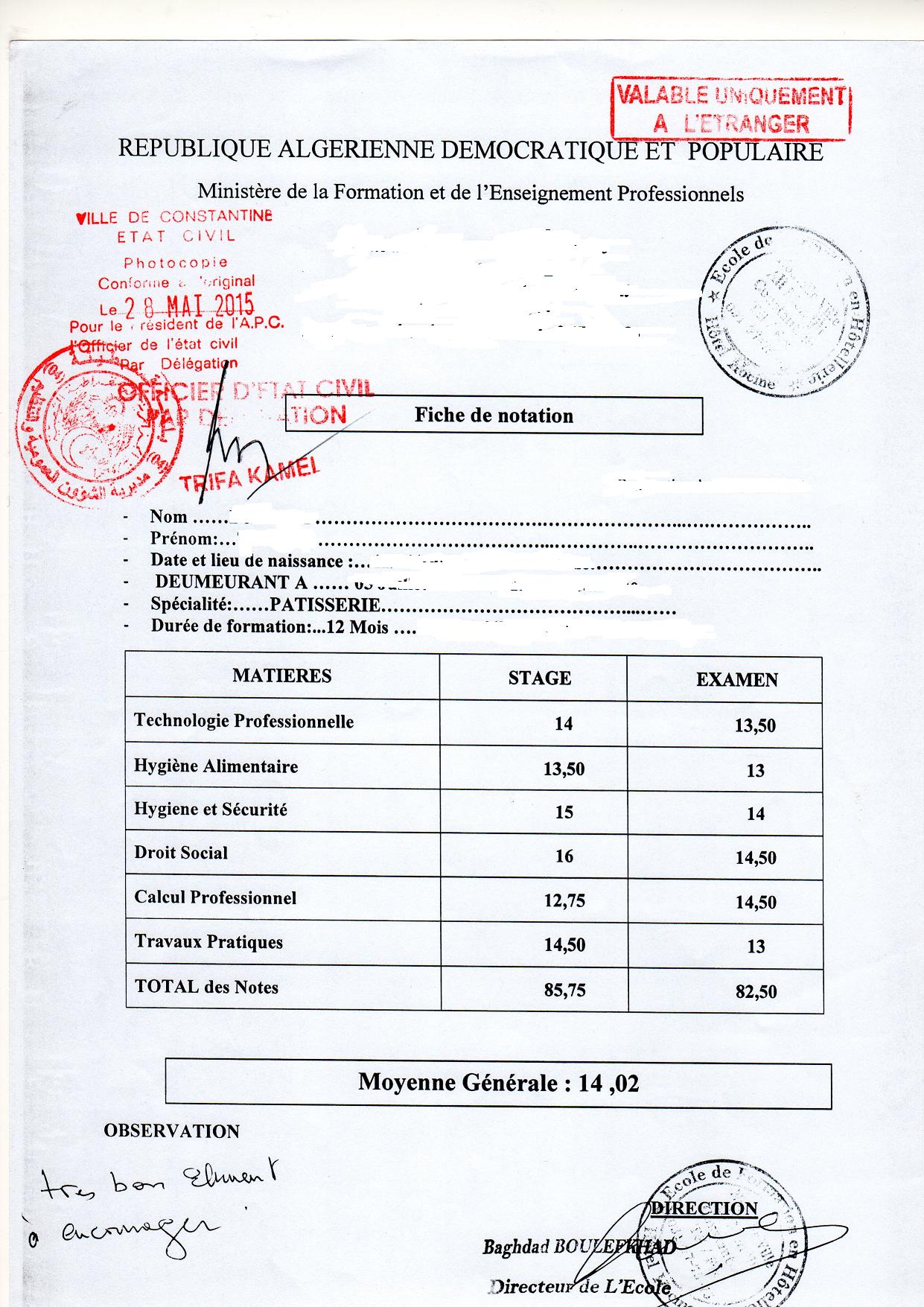 Juste une question ci joint le relevé de note de ma formation de pâtisserie