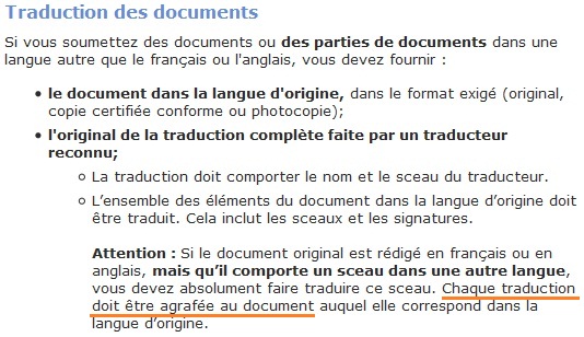 Oui justement j'ai fait l'authentification de la copie et même l'originale et je l'ai certifié au ministère des affaires étrangères puis j'ai traduit le tout en français. Devrais-je aussi traduire l'original du document ?