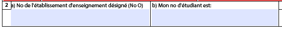 tevamadinina972 Posté(e) 12 novembre 2014 Posté(e) 12 novembre 2014 Bonjour, J'aimerais savoir quoi mettre pour completer les champs qui me sont demandé. J'ai chercher sur le site de l'école (UQTR) et sur la lettre d'acceptation mais je n'arrive pas à identifier où se trouvent ces informations. Citer