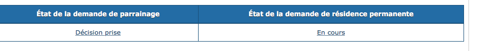 Slt achref peux tu me dire stp ou tu as lu en cour a gauche ou à droite, moi à chaque foi que je rentre je trouve dossier reçu côté résidence permanente et côté parrainage en cour??!! J ai pas compris