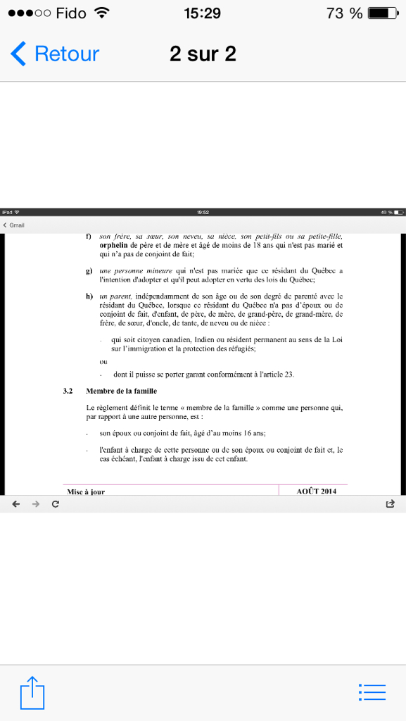 Habitués trefle Posté(e) 4 février 2015 Habitués Posté(e) 4 février 2015 Est-ce que les autres paragraphes dont vous parlez sont sur le site d'Immigration Canada ? Si ça n'est pas le cas, n'en tenez pas compte surtout un blog ! Un adulte ne peut pas parrainer son frère, sa sœur, sa nièce, etc. même si c'est la famille. Vous pouvez parrainer vos enfants mineurs, votre conjoint ou vos parents et c'est tout. Si vous aviez été mineure il aurait pu. Le fait que votre frère vive seul c'est un choix de vie et n'a rien à avoir avec l'immigration. Citer