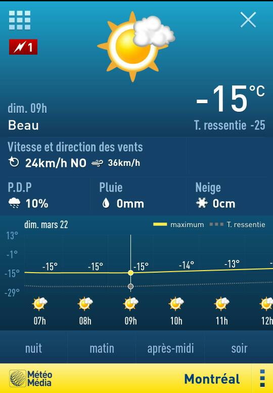 Habitués juetben Posté(e) 23 mars 2015 Habitués Posté(e) 23 mars 2015 -15 ressenti -26 A toi de voir mais moi je marche pour aller bosser et ça fait une différence C'est vrai que je vais travailler en voiture... Par contre je travaille dehors entre 8 et 10h par jour! Et la température c'est -15, tout ce qui t'entoure est à cette température, oui c'est un ressenti mais c'est totalement faux de dire qu'il faisait -25... A ce rythme quand tu descends une pente de ski il fait plus froid que quand tu remontes... Cela n'a aucun sens de dire que la température était ainsi. Citer