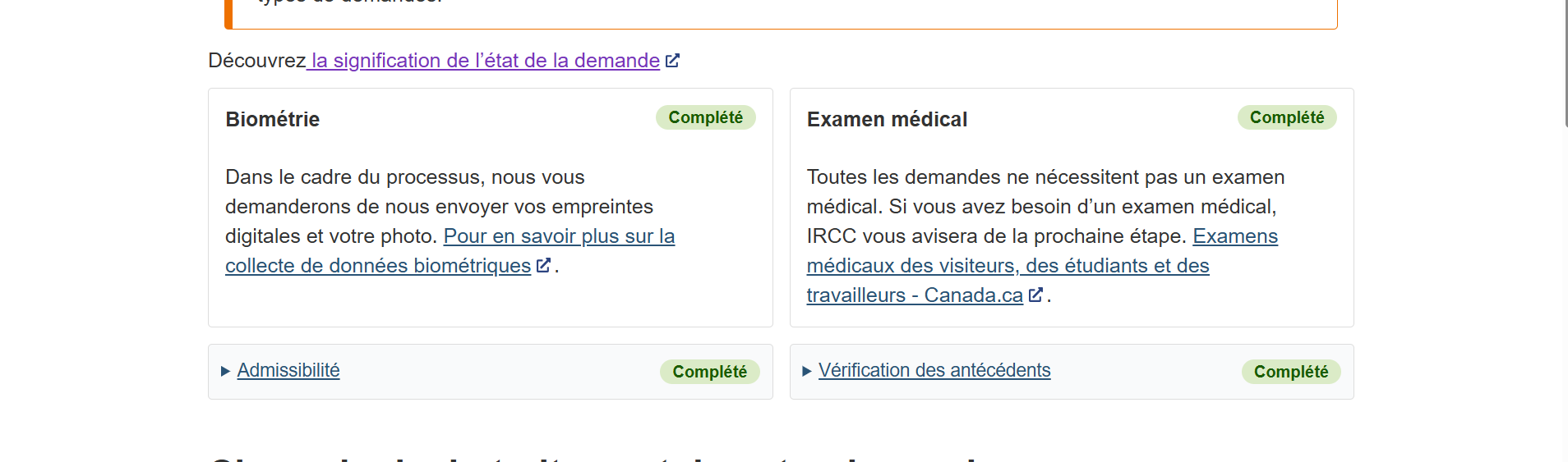 ReneG Posté(e) 29 juillet Posté(e) 29 juillet Bonjour à tous Demande PRTQ - Outland - Dépôt de la demande : 29 mai 2025 - AR - demande de correction - invitation Biométrie : 06 juin 2025 - Biométrie fait: 09 juin 2025 - IVM : 10 Juin 2025 - Envoie Correction : 10 Juin 2025 - VM : 16 Juin 2025 C’était rapide mais je n’ai plus aucun nouvel depuis. Le résultat de la VM est vide dans mon espace IRCC clé et la vérification antécédent est « sans objectif » Je n’arrive pas à avoir une info de suivi sur ma demande, quelqu’un pourrai m’aider ? Le site https://www.canada.ca/fr/immigration-refugies-citoyennete/services/demande/verifier-etat.html ne me donne pas de résultat Citer