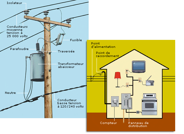 Habitués shihiro Posté(e) 29 mai 2007 Habitués Posté(e) 29 mai 2007 Salut je pense que tu auras tous les renseignements techniques sur le site d'Hydro-QuébecIl y a effectivement des conducteurs basses tensions 120/240 qui arrivent direct au domicile. Citer